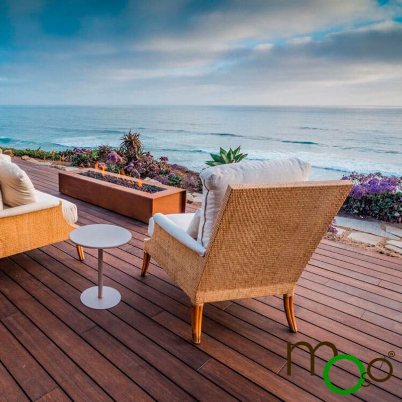 Maderas exóticas, como el Ipe o el novedoso Bambú para exterior de la marca Moso. Garantía y durabilidad