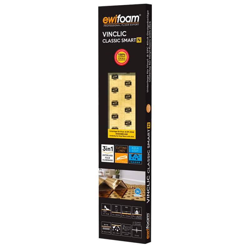 Base especifica Ewifoam Vinclic Classic Smart Underlay N Adecuado para suelos vinílicos en clic  para la colocación sobre calefacción de suelo: su Resistencia térmica: 0,04 m² K/W.