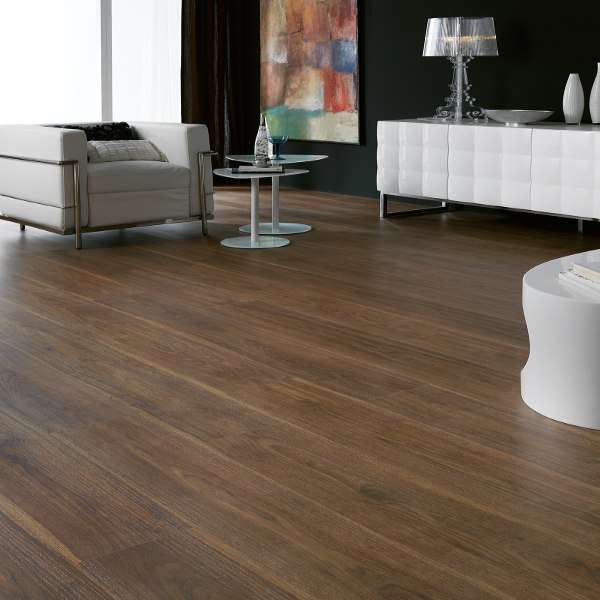 Este elegante suelo laminado de distinguido color nogal posee unos acabados de primera calidad y unas texturas naturales, elegantes y muy realistas. Cuenta con las tecnologías de protección contra rayado y anti-humedad más avanzadas. Su instalación es rápida y sencilla.