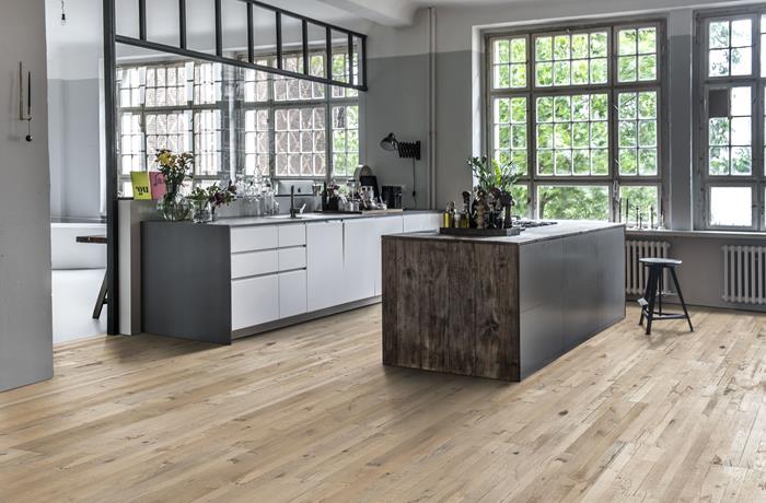 Este partquet kährs de 3 lamas aceitado de la colección Da Capo presenta una variación de color intencional en las tablas, que van desde el blanco polvo hasta el marrón polvoriento para crear una apariencia dramática y desgastada. Las manchas de agua en combinación con los nudos y grietas en las tablas dan como resultado una hermosa expresión envejecida. Cada tablón se cepilla cuidadosamente para resaltar el carácter de la veta y resaltar la textura natural de la madera.