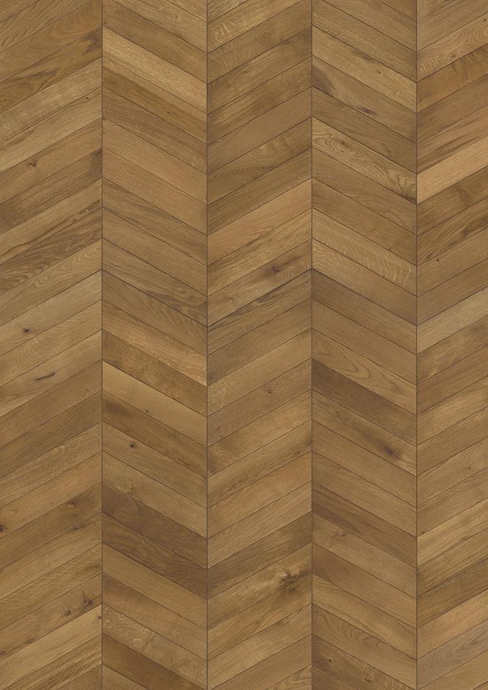 El acabado ligeramente ahumado de este parquett de roble de roble estampada lista para instalar de la colección Chevron enriquece su cálido tono toffee y aporta una expresión moderna a su aspecto tradicional. Cada tabla se cepilla cuidadosamente para resaltar el carácter de la veta y resaltar la textura natural de la madera. La artesanía parcial le da a cada tablero su apariencia única, mientras que el microbiselado realza el icónico diseño geométrico. Un paquete contiene una división uniforme de tableros con diseño Chevron del lado izquierdo y derecho. Este producto requiere un tratamiento de mantenimiento posterior a la instalación con Kährs Satin Oil Matt.