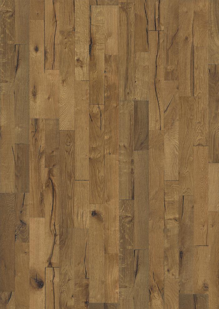 Este parquet Kährs de 2 lamas en tonos miel de la colección Da Capo presenta nudos y grietas color carbón para una rica expresión rústica. Cada tabla se cepilla cuidadosamente para resaltar el carácter de la veta y resaltar la textura natural de la madera. El biselado en los cuatro lados garantiza una apariencia y sensación clásica de tablones completos. Cada tabla se raspa meticulosamente a mano, lo que realza el aspecto envejecido del suelo.