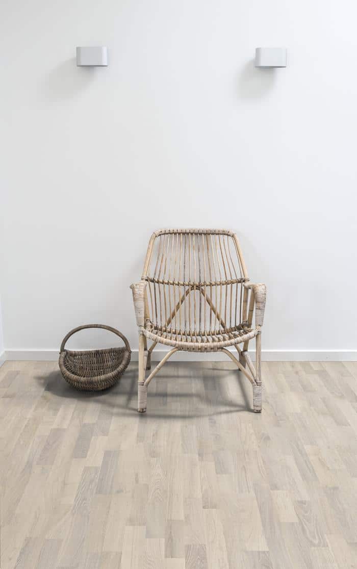 El tinte blanco semitransparente de este parquet Kährs de roble cepillado de dos lamas de la Colección Lumen equilibra los contrastes claros y oscuros en la madera, permitiendo que los sutiles tonos cálidos del roble se filtren suavemente. El acabado de laca ultramate realza las variaciones naturales de la madera, creando la impresión de madera recién aserrada. Esto elimina efectivamente el deslumbramiento mientras protege el suelo del desgaste diario.