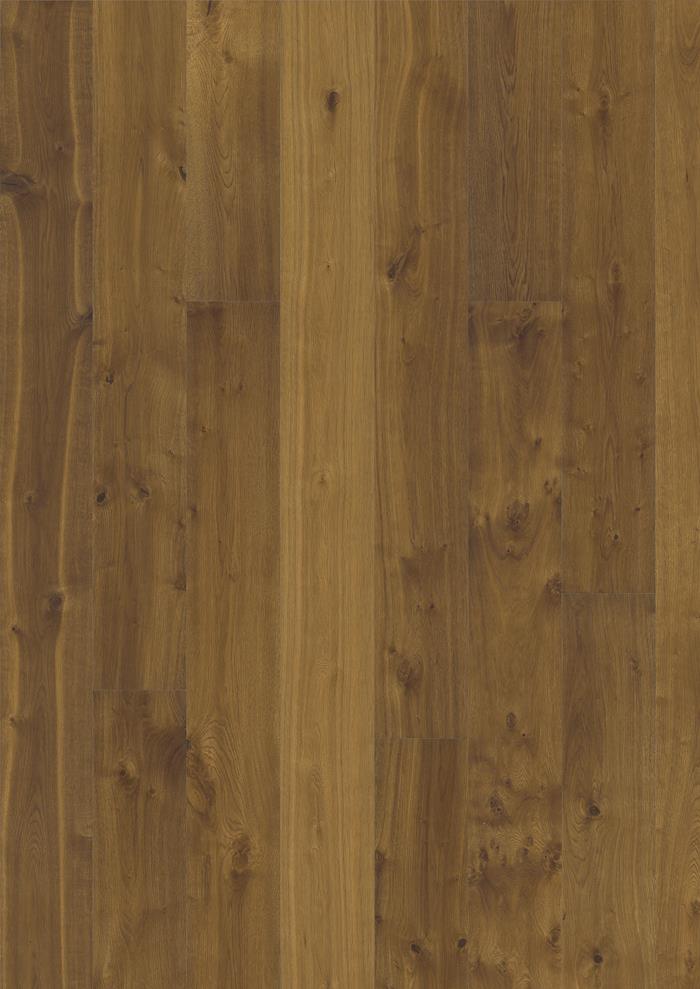 El sutil tinte ámbar de este parquet kährs de roble de una sola lama de la colección Småland permite que los tonos ricos y cálidos de la madera se filtren, dando como resultado una expresión viva y un contraste naturalmente equilibrado. Cada tabla se cepilla cuidadosamente para resaltar el carácter de la veta y resaltar la textura natural de la madera. El biselado de cuatro lados en los bordes garantiza una apariencia y sensación clásica de tablones completos. Cada tabla se raspa meticulosamente a mano, lo que realza el aspecto desgastado de la madera.