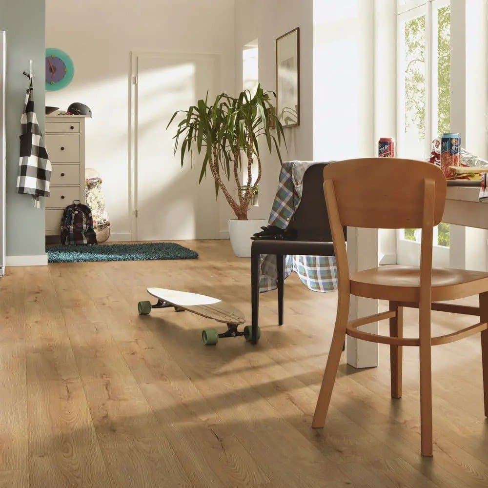 Con su espesor de 8 mm y una categoría de uso 23 | 32 / AC4, es apropiado para áreas domésticas de uso muy frecuente, como el cuarto de baño, o áreas comerciales (p. ej., tiendas o restaurantes).