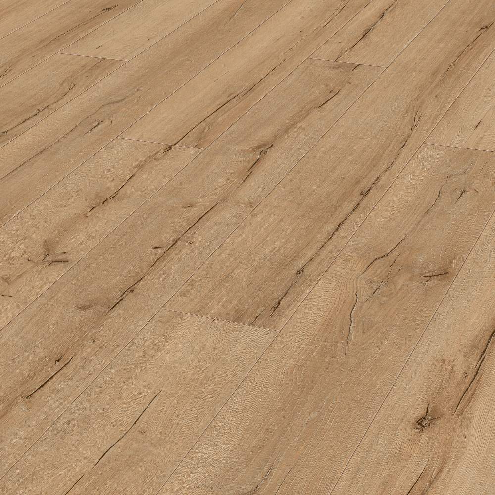 Por lo tanto, este suelo también puede colocarse en cuartos de baño. La superficie Diamond Pro resistente a los arañazos y el papel decorativo antiestático completan las ventajas técnicas de este suelo.