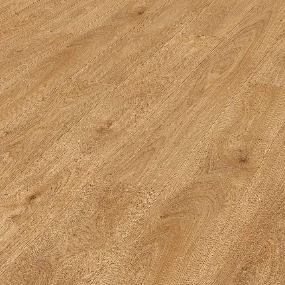 Por lo tanto, este suelo también puede colocarse en cuartos de baño. La superficie Diamond Pro resistente a los arañazos y el papel decorativo antiestático completan las ventajas técnicas de este suelo.