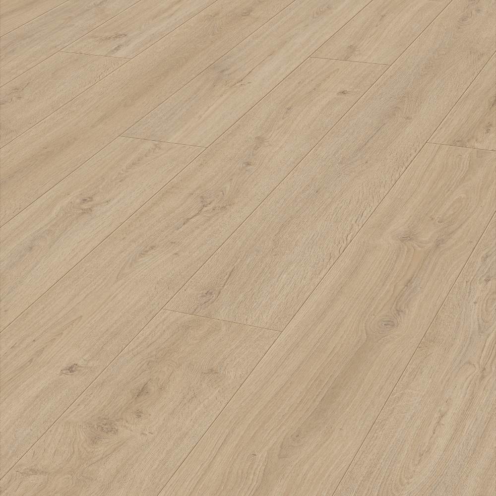 Por lo tanto, este suelo también puede colocarse en cuartos de baño. La superficie Diamond Pro resistente a los arañazos y el papel decorativo antiestático completan las ventajas técnicas de este suelo.