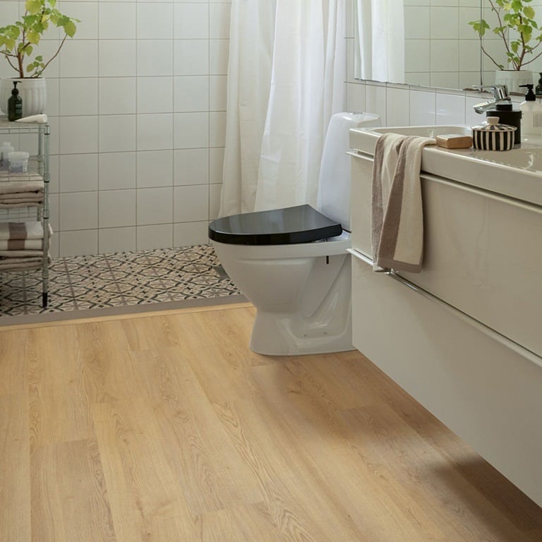 Además, gracias al sistema AquaSafe, es un suelo resistente al agua y adecuado para espacios expuestos a la humedad.