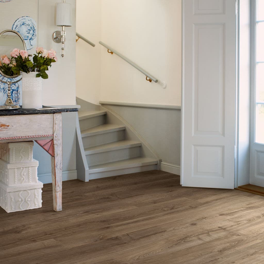 El suelo laminado PERGO VISBY ROBLE GRANJA es perfecto para darle a tu hogar un estilo elegante y natural.