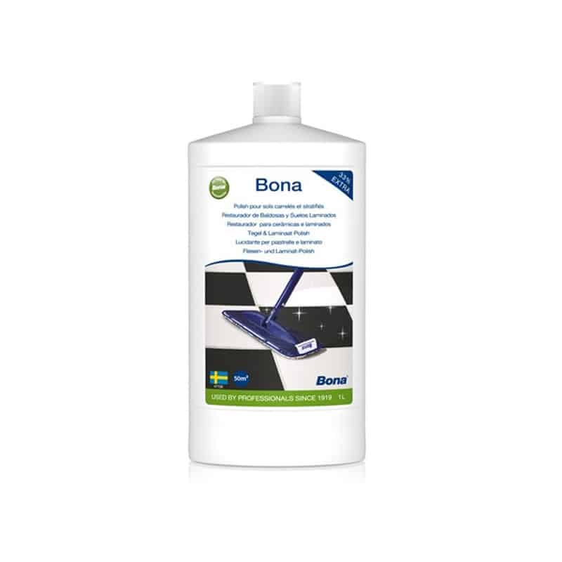 El Renovador de Suelos Laminados y superficies duras Bona es un producto de mantenimiento brillante listo para utilizar para una gran variedad de superficies duras como pisos laminados, de vinilo, de linóleo, baldosas sin esmaltar (cerámicas, losetas), piedras y mármol sellado.